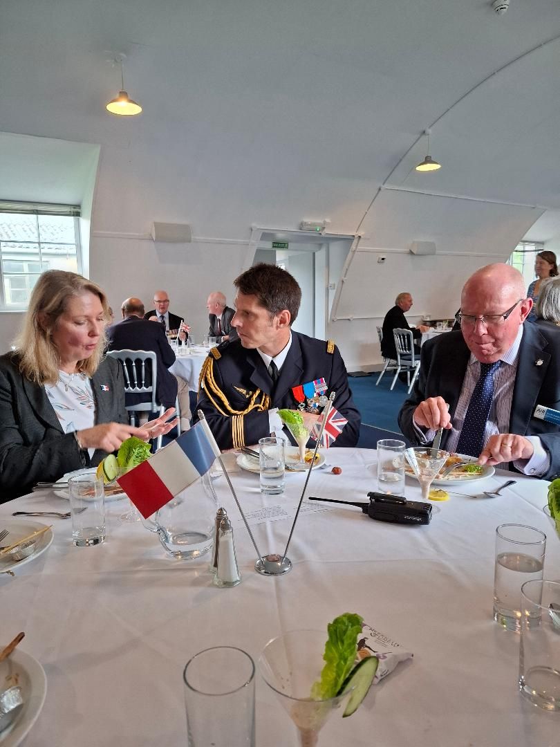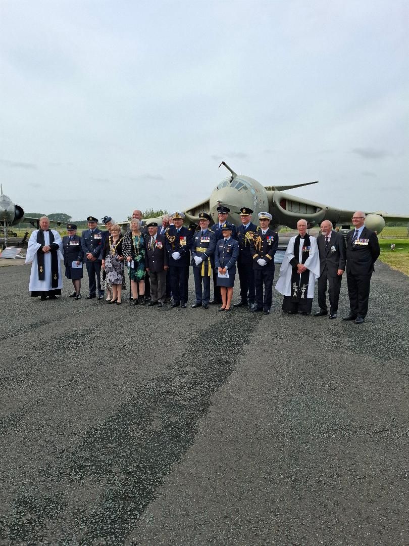 Photo de groupe devant le Handley Page NIMROD. Sur la photo le Vétéran de Normandie décoré en Mai de la Légion d'Honneur à côté de l'Amiral ??.